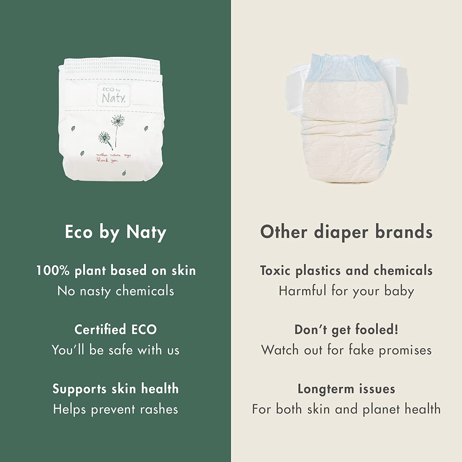 GOOD FOR BABY, GOOD FOR NATURE: Eco by Naty was first started in Sweden nearly 27 years ago. Today, we continue with our goal to create products that are not only safe for our bodies, but that are also good for the environment. Our High-Tech Eco Products are backed by independent sustainability certifications, we offer the greenest products, all made from nature!