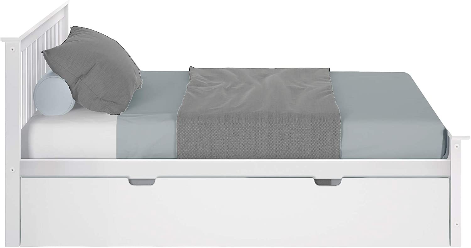 • Including single bed size trunk + slats. Trundle fits standard double bed mattresses up to 20.32 cm thick. The ramps overlap the bed rails to prevent sliding under the bed.