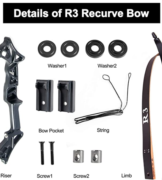 Included Options: 1 x Bow, 1 x Five-Pin Optical Bow Sight, 1 x Brush Arrow Holder, 1 x Rubber Stabilizer, 1 x Arm Guard, 1 x Bow String, 1 x Finger Guard, 1 x Allen Wrench, 1 x arrow handle, 1 x arrow arrow quiver and 12 arrows (random color)